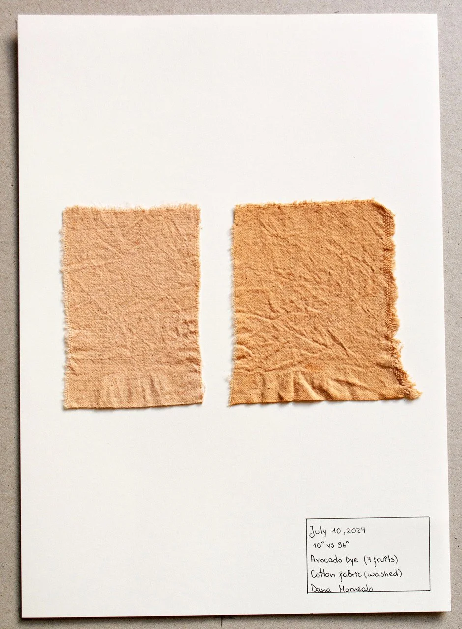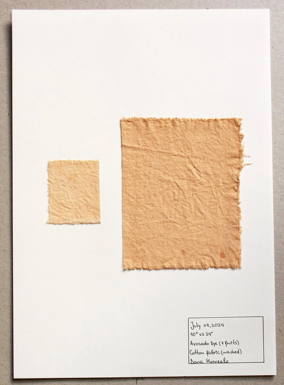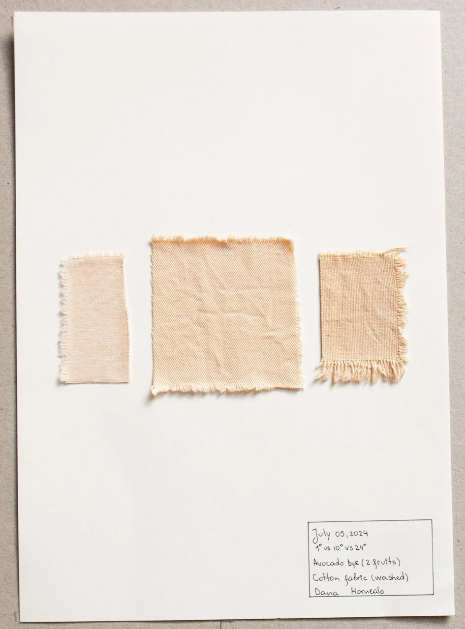 One of our student collaborators Dana Monealo brought avocado stones from the avocado tree grown in her family home in Portugal. The skin and seeds (pit) of avocado both have been used for centuries for their richness in tannins and the tannic acid included luckily already serves as a mordant.