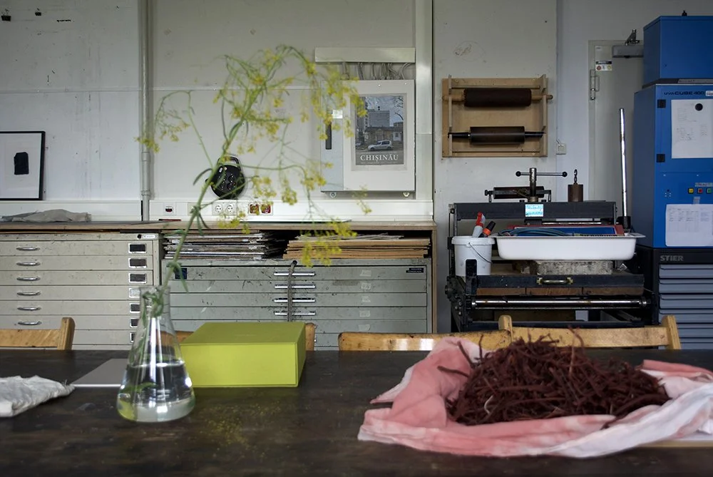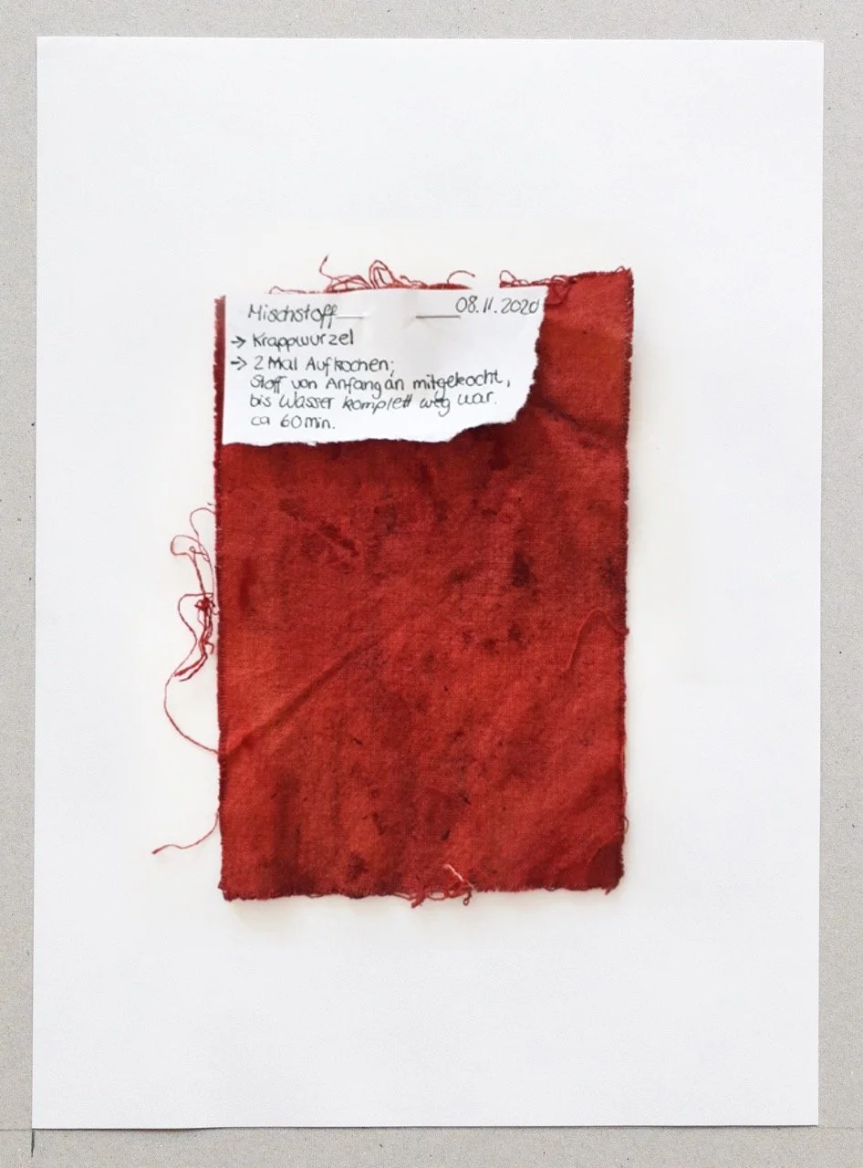 As one part of the project we look towards pre-industrial dye recipes since knowledges from the past might inform us to build alternative presents and futures. During the making we follow our sensory and affective responses. We activate our bodily knowledges and reconsider knowledges of our ancestors. What kind of understanding does these recipes hold? What is transferable, what is lost?