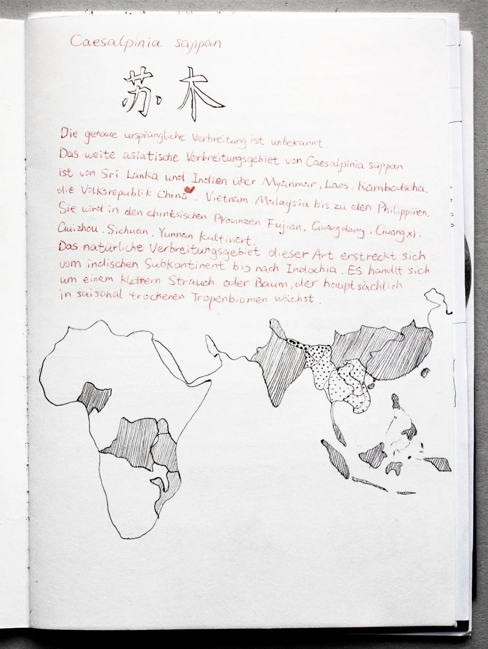 One of our student collaborators Ziqing Guo brought Sappan wood from one of her visits home in China. Sappan Wood is mainly distributed in tropical Asian regions and has been locally and historically employed as a dye and medicinal plant. The colouring agent stemming from the wood first appears in yellowish hues and later through oxidation can shift to amazingly deep reds. Further, mordants and ph, temperature and cloth, the soil in which it was grown all take part.